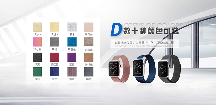 - 主要颜色有IP18K金,IP14K金,IP玫瑰金,IP黑,IP枪,IP太空灰,IPS,IP蓝色,IP咖啡,IP七彩。